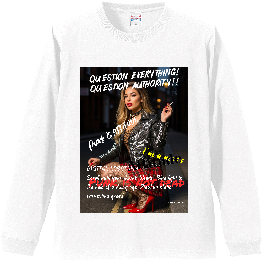 【パンク長袖Tシャツ ロンドンの路地裏で一服するパンクガール】フルカラー